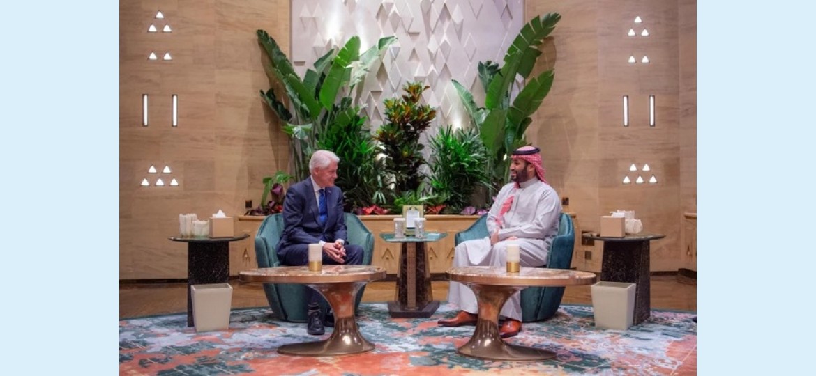 استقبل صاحب السمو الملكي الأمير محمد بن سلمان بن عبدالعزيز آل سعود ولي العهد رئيس مجلس الوزراء في مكتبه بالرياض اليوم الرئيس الأسبق للولايات المتحدة الأمريكية السيد بيل كلينتون.