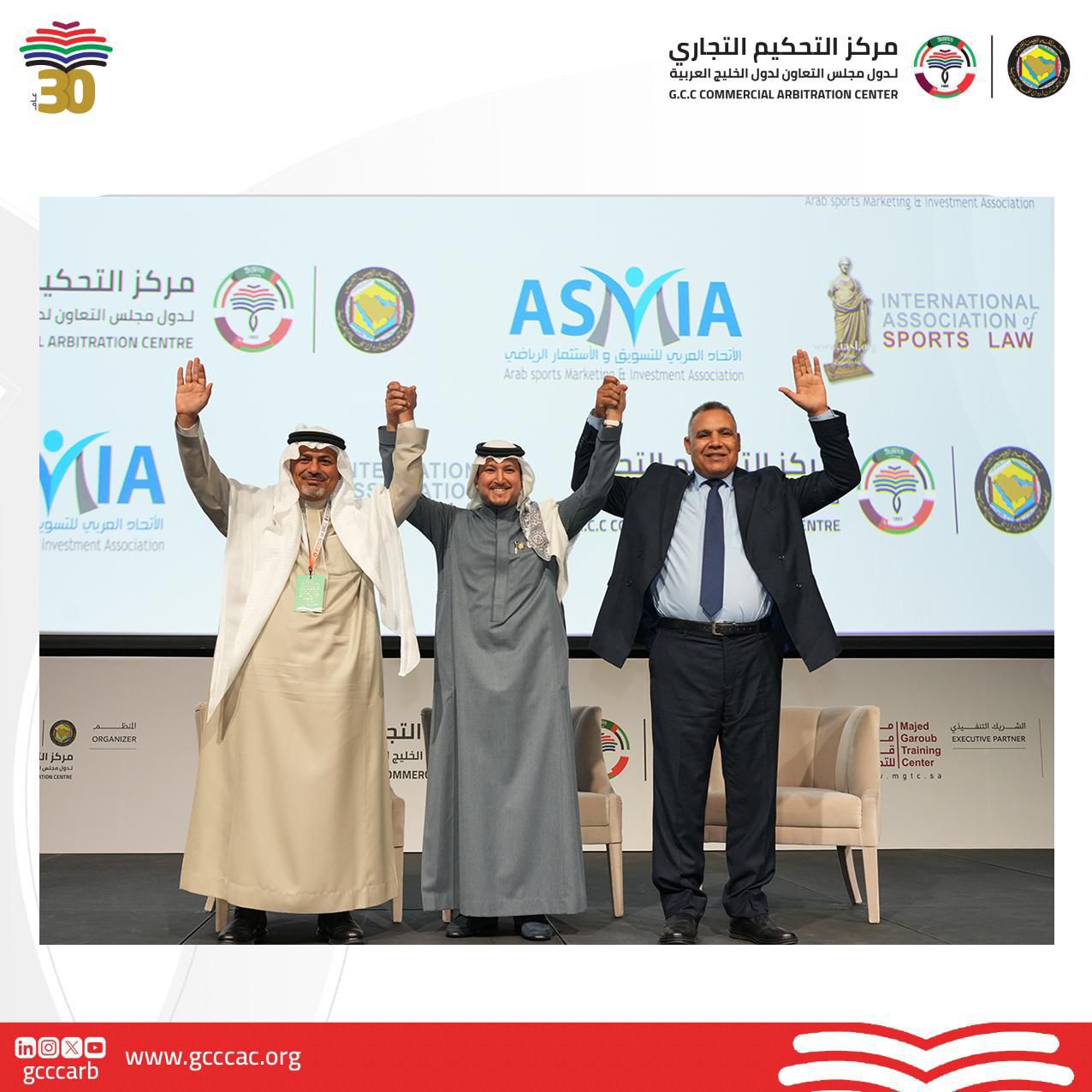 من جهته اكد د.كمال آل حمد الأمين العام لمركز التحكيم التجاري بدول الخليج عن سعادته بهذا التحالف الثلاثي لعقد وتنظيم اهم واكبر مؤتمر رياضي خليجي عربي دولي يركز على اهمية فض منازعات الاستثمارات الرياضية وضرورة خلق وتأهيل محامين ومحكمين وخبراء مختصين في عقود الاستثمارات الرياضية بمختلف أنواعها.