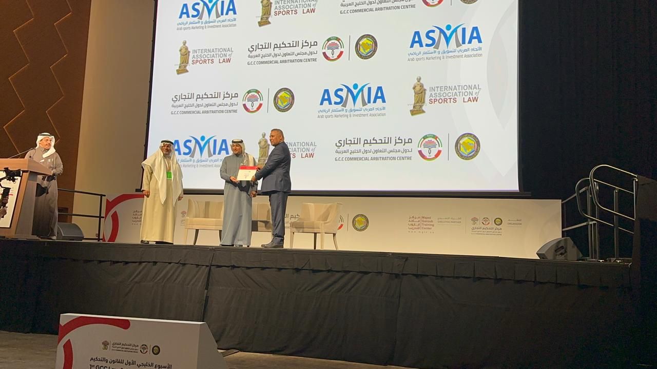 وفي ختام المؤتمر الاعلامي، قدم د. كمال آل حمد الأمين العام لمركز التحكيم التجاري الخليجي قدم عضوية أول محكم في قطاع الإستثمار الرياضي معتمد لدى المركز للمحامي ماجد محمد قاروب بصفته رئيس الجمعية الدولية لقانون الرياضة، وعضوية اول خبير في الاستثمار الرياضي للدكتور محي معروف الأمين العام للأتحاد العربي للتسويق والاستثمار الرياضي.