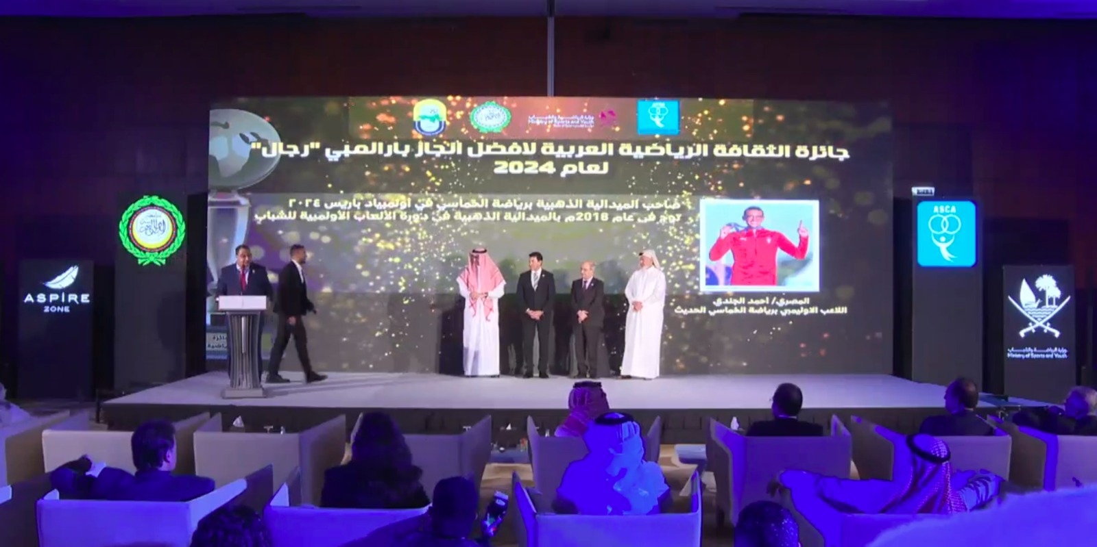 وشهد حفل توزيع الجوائز حضور الدكتور أشرف صبحي وزير الشباب والرياضة و الشيخ حمد بن خليفة بن أحمد آل ثاني وزير الرياضة والشباب القطري والمهندس شريف العريان رئيس الاتحاد المصري للخماسي الحديث ونائب رئيس الاتحاد الدولي وأمين عام اللجنة الأولمبية المصرية وعدد من كبار الشخصيات الرياضية العربية والدولية بالإضافة إلى عدد من نجوم الرياضة العربية.