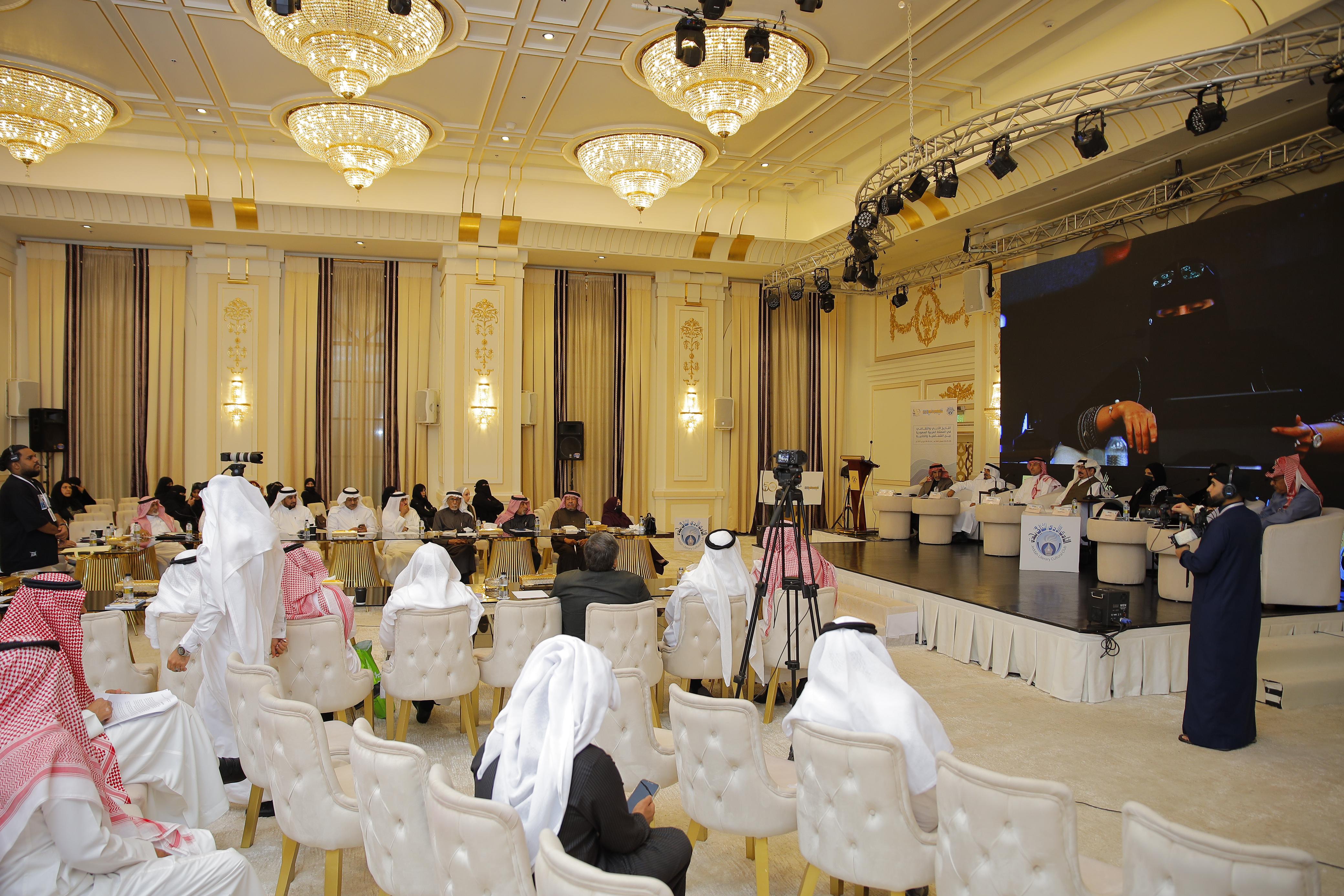 تواصلت فعاليات الدورة الـ(21) لملتقى قراءة النص، بالجلسة الرابعة، من خلال عدة بحوث وأوراق، قدمها الدكتور عبدالله ثقفان، حيث رصد الدكتور حمد بن ناصر الدُّخِّيل "الأصول الثقافية للأدب السعودي بين الشفاهية والكتابية"، ممهدًا لذلك بالقول: أمضت البشرية دهرًا طويلًا، وهي تتناقل أخبارَها ومعلوماتها وقصصها مشافهةً قبل معرفة الكتابة والتدوين، وثقافة ذلك العصر البعيد تلاشت دون أن تأخذ حظها من التدوين والحفظ، وكان العرب في ثقافتهم وأدبهم وشعرهم وسائر معلوماتهم أمة شفهية، واستمروا على ذلك ــ فيما نعرف ــ نحو ثلاثة قرون، حين انتشرت الكتابة والتدوين التحريري في بداية القرن الثاني الهجري، واستمرت الثقافة الشفهية عند العرب جنبًا إلى جنب حتى منتصف القرن الثالث الهجري، فقد ذكر الجاحظ أنه كان يلم بسوق المربد في البصرة، ويأخذ اللغة والشعر عن الأعراب الذين يلمون بالسوق للتجارة أو الرواية. والجاحظ عاش ما بين 150 ــ 250هـ. وما نقرؤه اليوم مما أثر عن العرب القدامى من فنون الثقافة والأدب كان مصدره الأول المشافهة، ولذلك لا نستغرب ما يقع في هذه الروايات من اختلاف كثير في نصوصها.