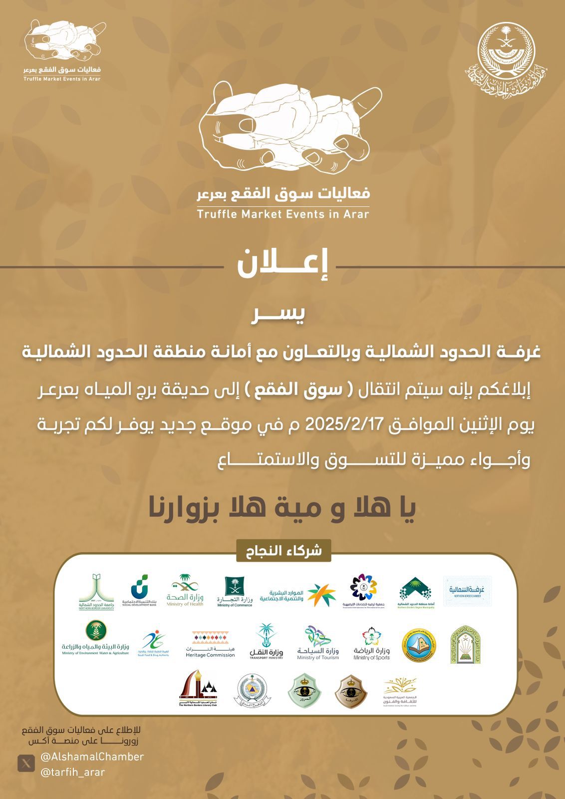 ودعت غرفة الحدود الشمالية جميع الزوار للاستمتاع بالأجواء الجديدة للسوق، مؤكدة حرصها على تقديم تجربة مميزة تجمع بين التراث والتسوق والترفيه.