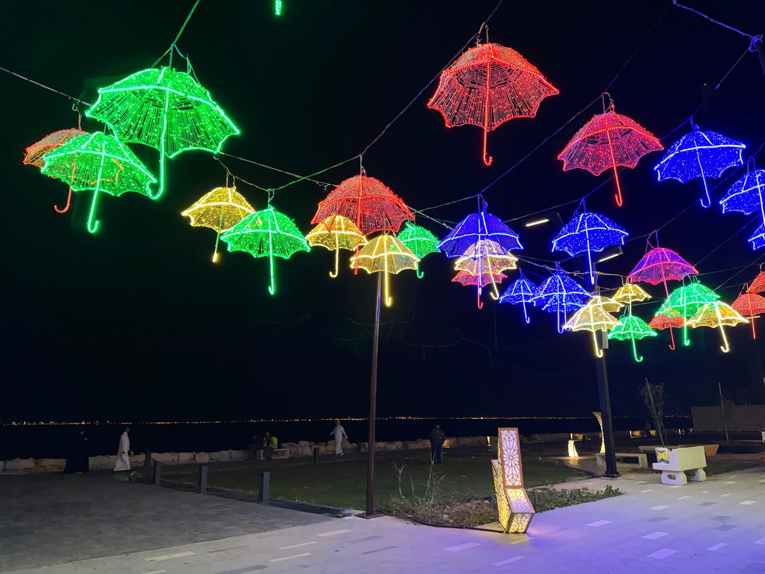وشملت التجهيزات تركيب أكثر من 3000 بنر على أعمدة الإنارة في الطرق الساحلية والمحورية، إلى جانب 567 سارية في تقاطعات الجسور والأنفاق والواجهات البحرية والحدائق، بالإضافة إلى 200 مجسم يحمل هوية العيد، بعضها مجسمات مضيئة، مما يضفي طابعًا احتفاليًا مميزًا في الأماكن العامة.