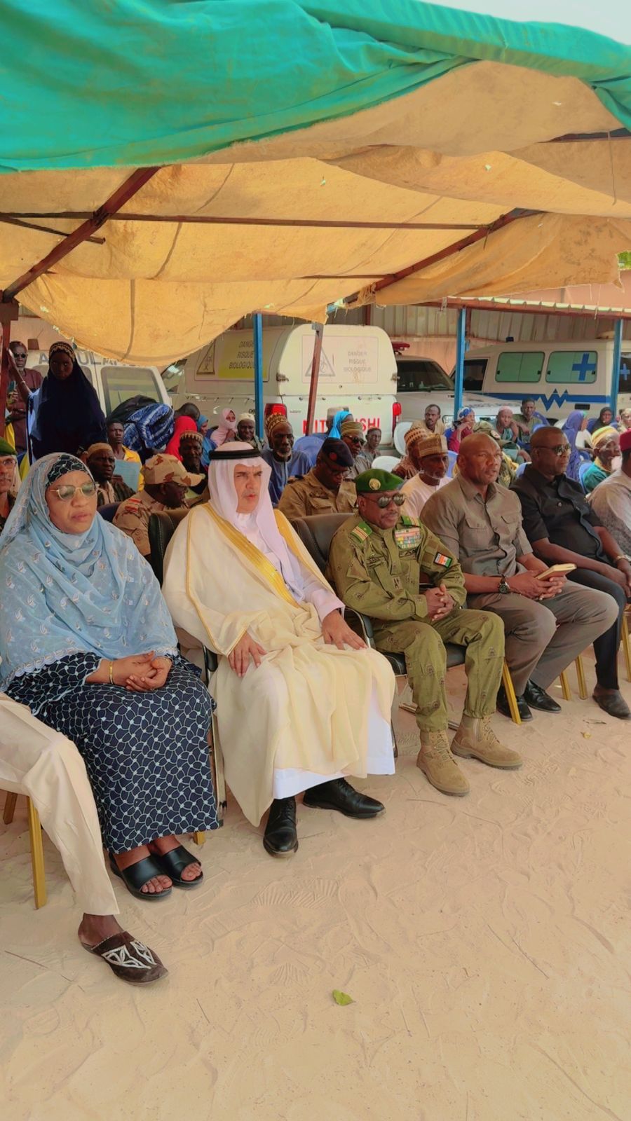 بتوجيه خادم الحرمين الشريفين الملك سلمان بن عبدالعزيز ايده الله، دشن سعادة سفير خادم الحرمين الشريفين لدى النيجر الدكتور/ زيد بن مخلد الحربي يوم الأربعاء ٣٠ أبريل ٢٠٢٥ مشروع نور السعودية التطوعي لمكافحة العمى في جمهورية النيجر، ضمن جهود مركز الملك سلمان للإغاثة والأعمال الإنسانية، وذلك بحضور معالي حاكم منطقة (دوسو) العقيد ركن/ بانا الحسن ، وأمين عام المنطقة، وعمدة البلدية، والمدير الإقليمي للصحة العامة، والزعماء الدينيين والتقليديين، وعدد من المدعوين، وفي كلمته بهذه المناسبة أوضح سعادة السفير أن تنفيذ مشروع نور السعودية التطوعي لمكافحة العمى، والذى يستهدف أكثر من عشرة آلاف شخص في منطقتي دوسو ومرادي، يأتي امتداداً للدور الإنساني للمملكة ورسالتها العالمية.