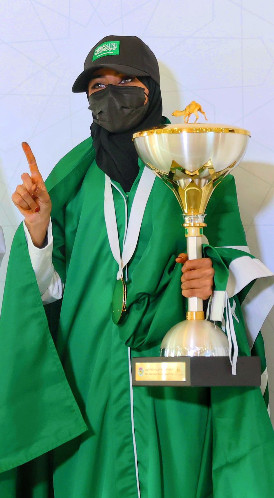 وحققت الشمري الفوز بكأس البطولة والميدالية الذهبية مع المطية " بشار " في شوط السيدات فيما جاءت الهجانة عبير بنت أحمد حكمي مع المطية " نمرود" في المركز الثاني لتحصل على الميدالية الفضية .