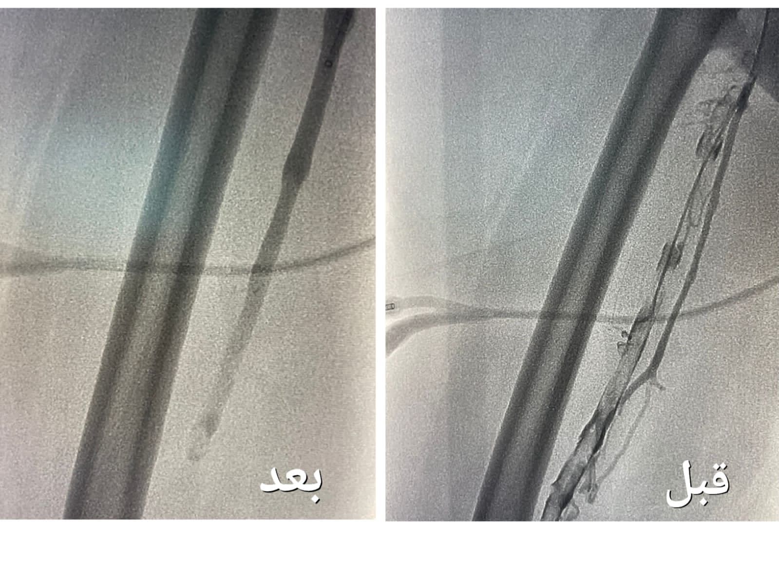 وأوضحت "الصحة" أنه بعد إجراء الفحوصات الطبية و الكشف تبين وجود جلطة وريدية من مستوى الكاحل إلى مستوى أوردة الحوض الأيمن ، و انسداد كامل في أوردة القدم اليمنى حتى الحوض ، قرر بعدها الفريق الطبي تنويم المريضة و التنسيق مع فريق وحدة الأشعة التداخلية بشكل عاجل لدراسة الحالة و معالجتها ، و وضع الخطة العلاجية ، لنقلها إلى غرف عمليات الأشعة لإجراء عملية بإستخدام جهاز إزالة الجلطات تحت التخدير الموضعي و التهدئة الواعية .
