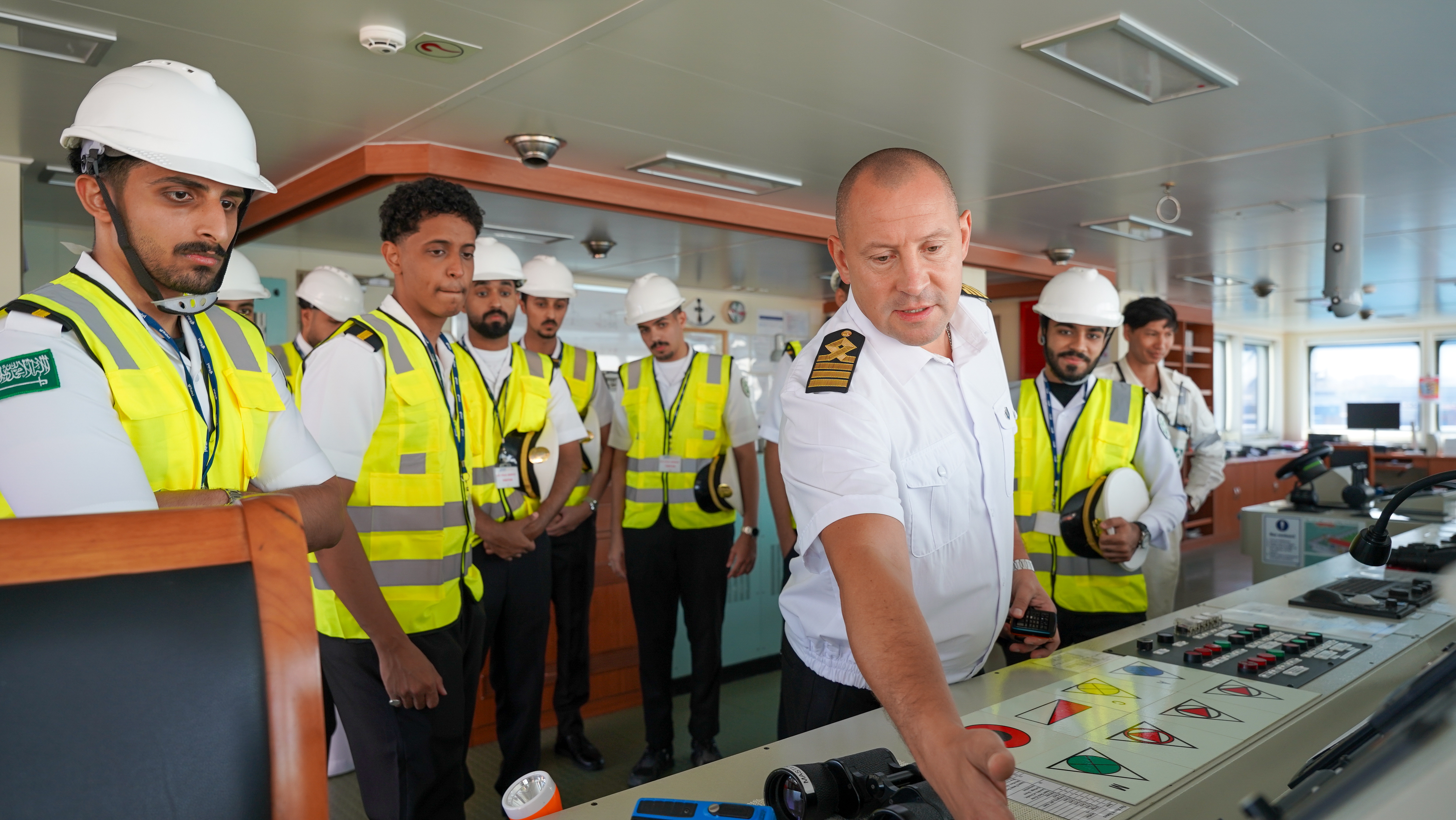 فيما قال الطالب عواد الراجحي (تخصص الملاحة البحرية): "التواجد في جسر القيادة والاطلاع على أنظمة السلامة زاد من فهمي للتحديات التي يواجهها الضباط البحريون، وأهمية التخطيط الدقيق للحفاظ على سلامة الطاقم والسفينة".