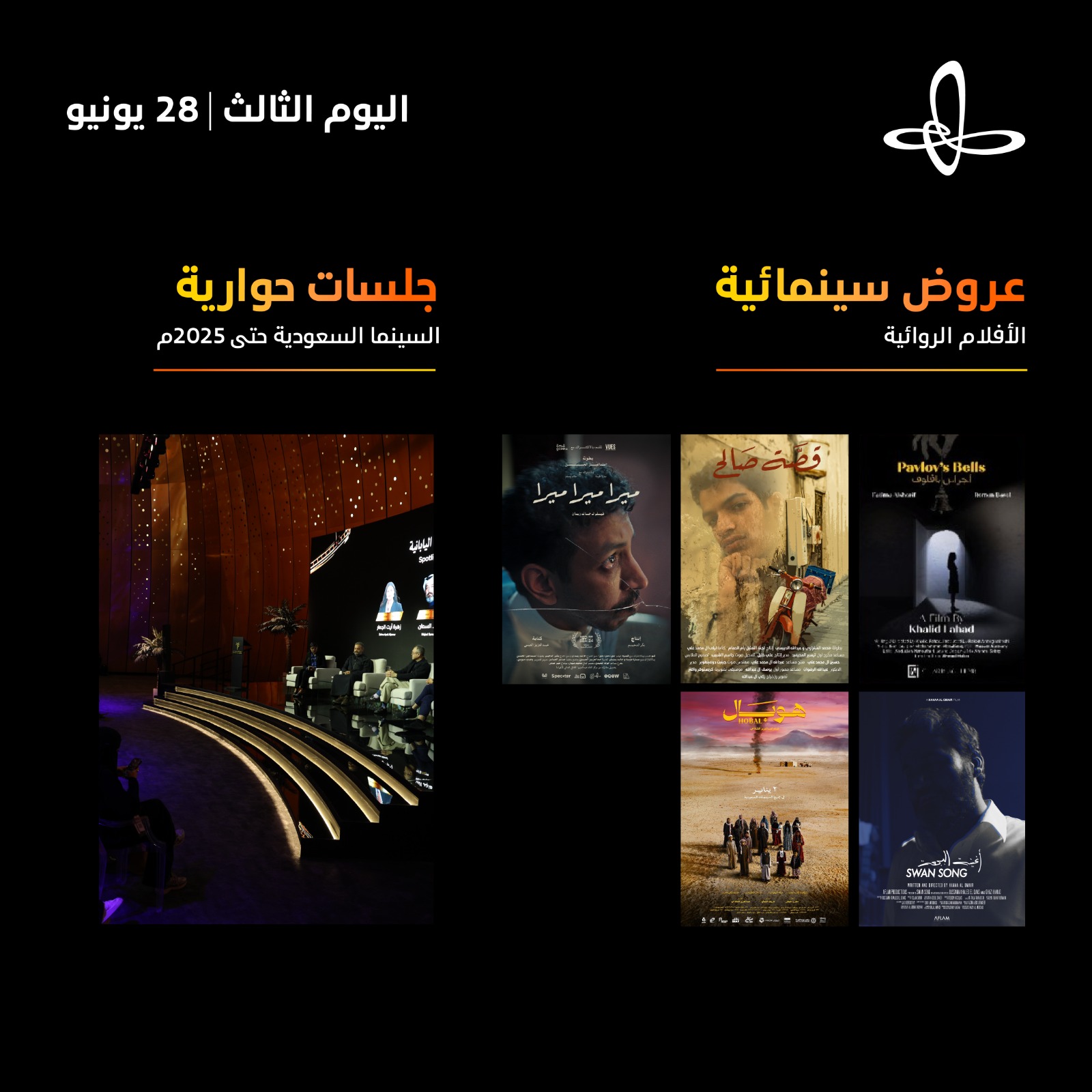 وفي "أغنية البجعة" للمخرجة هناء العمير، يعيد ممثل سعودي تقديم نص تشيخوف بأسلوب يحمل طيفًا من التأمل الذاتي والانكشاف المسرحي، بينما يرسم فيلم "قصة صالح" لزكي العبدالله ملامح كدّ يومي لفتى يعمل على توصيل الخضروات لتأمين راحة والده المسن. ويُختتم اليوم بفيلم "هوبال" للمخرج عبدالعزيز الشلاحي، الذي يعود إلى ما بعد حرب الخليج ليسرد حكاية عائلة بدوية تواجه شبح المرض وسط عزلة الصحراء.