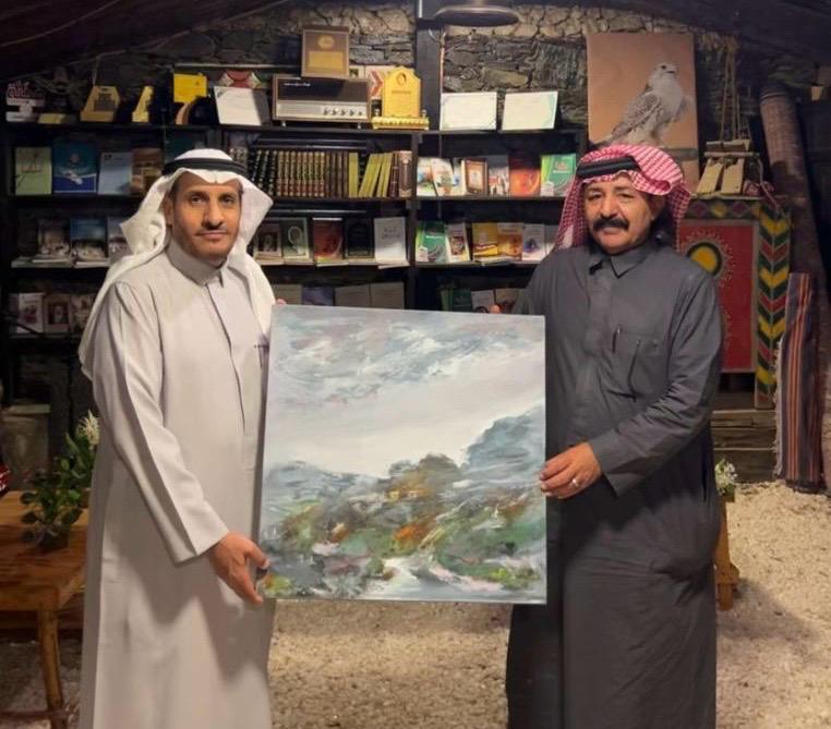 وتابع الخزمري قائلًا: أدين بالشكر والتقدير والامتنان للأستاذ ناصر أولًا على بشاشة الاستقبال، وكرم الضيافة، وهديته الغالية والمتمثلة في درع المتحف، كما أمتن له لقبوله أحد أعمالي الفنية لتعرض في متحفه الرائع، فهذا شرف كبير لي.. فكل الشكر والامتنان للأستاذ ناصر على هذا الجمال وهذا الإرث الباذخ.