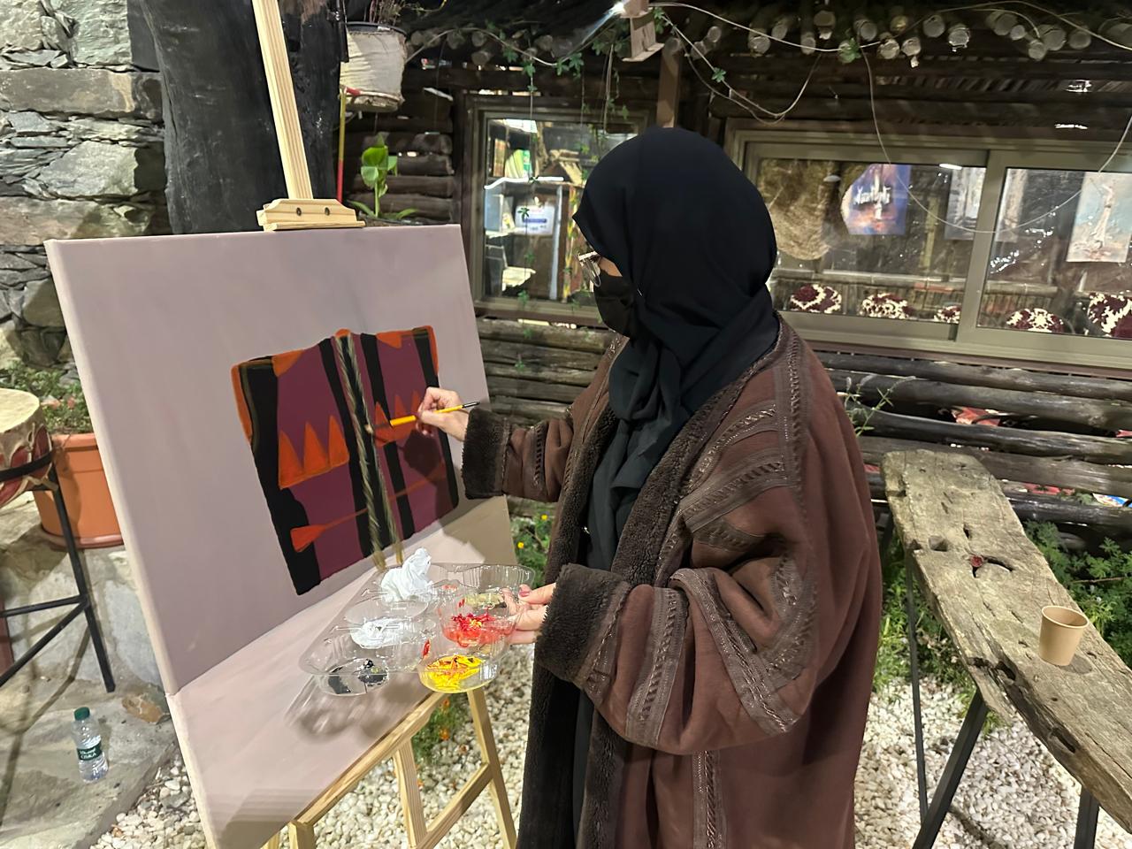 - وتلخص الفنانة نوال العمري حصيلة مشاركتها في فعاليات المتحف قائلة: شاركت لمدة ثلاثة أيام في الرسم أمام زوار المتحف، الذي اعتبره من أهم المتاحف الخاصة بالمملكة، بما يضمه من تحف وآثار ومقتنيات، فكانت تجربة رائعة بالنسبة لي.. ذلك أن الرسم في موقع ثراثي، ومتحف ذاخر بالكنوز والقطع الناردة الجميلة، يحفز الإلهام، ويفتح النوافذ لطاقة الإبداع الداخلي، فكان أن أخرجت أبدع ما داخلي، في لوحة أسعدني كثيرًا أنها وضعت في مقدمة المتحف.