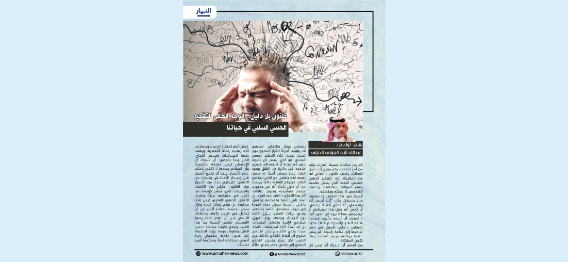 كم من علاقات جميلة انهارت، وكم من أسر تفككت، وكم من بيئات عمل تعطلت، بسبب ظنون لا أساس لها من الحقيقة. إنه التفكير الحسي السلبي، النمط الذي يجعل صاحبه يفسر المواقف بعاطفته وحدسه الشخصي، لا بعقله ومنطقه.