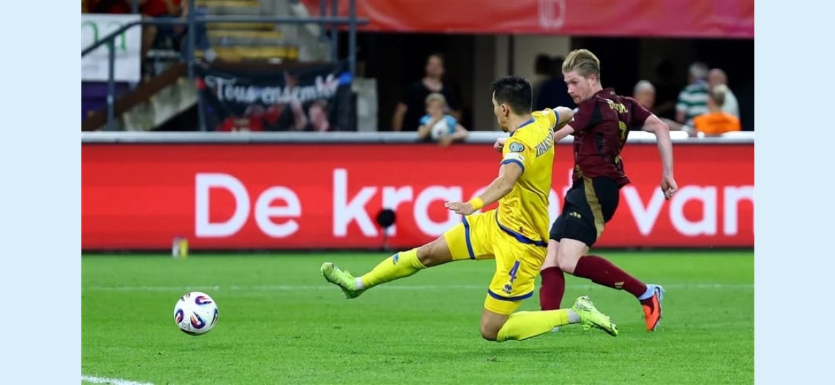 قاد النجم كيفين دي بروين منتخب بلجيكا إلى فوز كاسح على مضيفه كازاخستان بنتيجة (6-0)، اليوم الإثنين، ضمن منافسات التصفيات الأوروبية المؤهلة لنهائيات كأس العالم 2026.