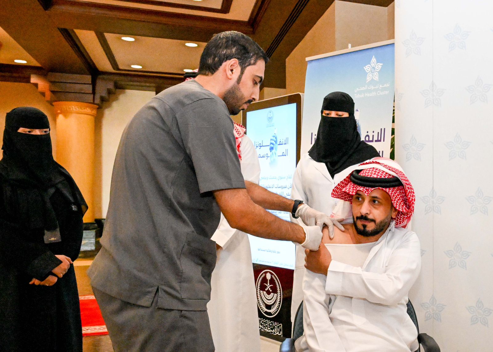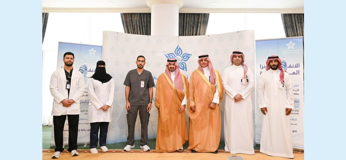 دشَّن صاحب السمو الملكي الأمير خالد بن سعود بن عبدالله الفيصل بن عبدالعزيز نائب أمير منطقة تبوك بالأمارة اليوم ، حملة التطعيم ضد الأنفلونزا الموسمية وذلك بحضور الرئيس التنفيذي لتجمع تبوك الصحي الدكتور فارس بن عايض الهمزاني . ونوّه سمو نائب أمير منطقة تبوك بالدعم والاهتمام الكبير الذي يلقاه القطاع الصحي بالمملكة من قبل خادم الحرمين الشريفين الملك سلمان بن عبدالعزيز آل سعود وسمو لي العهد - حفظهما الله - ، مثمناً سموه جهود القطاعات الصحية في رفع مستوى المناعة الصحية لدى المجتمع.