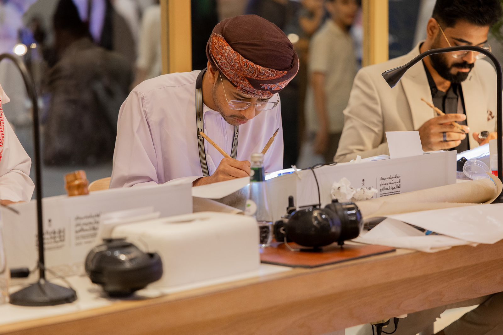 شهد معرضُ الرّياض الدّولي للكتاب انطلاقَ التَّصفيات النَّهائيَّة للنّسخة الثَّانية من مسابقةِ مبادرةِ مركز الأمير محمَّد بن سلمان العالميّ للخطِّ العربيّ، بمشاركة 9 متسابقين من دول: (الأردن، والكويت، وعُمان، وتركيا، وأندونيسيا، إضافة إلى متسابقَين من السّعوديّة، ومصر) يتنافسون في ثلاثة مساراتٍ هي: الثُّلث، والرُّقعة، والدّيواني الجَليّ، لنيل المراكز الثّلاثة الأولى في كل مسار، على أن تُقيَّم الأعمالُ المتنافسةُ من لجنة تحكيم متخصِّصة تضمُّ نُخبةً من الخبراء والمتخصِّصين في هذا المجال.