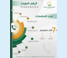ويُعد الرقم الموحد منصة تفاعلية لخدمة المستفيدين والمتطوعين والداعمين، إذ يتيح التواصل المباشر مع إدارات الجمعية المختلفة، والاستعلام عن المبادرات والبرامج، وتقديم الملاحظات والمقترحات، في إطارٍ من التكامل بين كامل فريق العمل في الجمعية لضمان سرعة الاستجابة وجودة الخدمة.