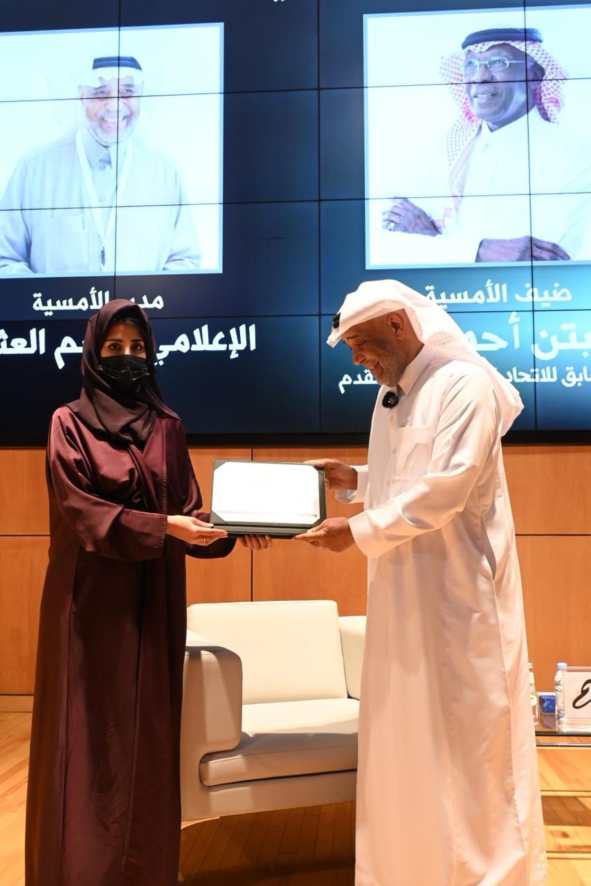 استضاف نادي وسم الثقافي مساء الأربعاء ٢٩ أكتوبر ٢٠٢٥م، نجم الكرة السعودية والرئيس الأسبق للاتحاد السعودي لكرة القدم الأستاذ أحمد عيد الحربي، في أمسيةٍ بعنوان “بين الأدب والملعب.. حوار في عالمين”، أدارها الإعلامي الأستاذ جاسم العثمان على مسرح سايتك بالخبر، بحضورٍ نوعيٍّ من المثقفين والرياضيين.