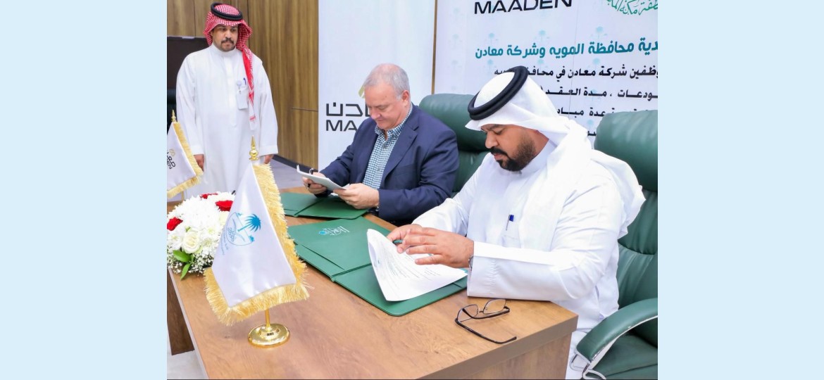 وقع رئيس بلدية محافظة المويه المهندس عبد الله بن سعود السبيعي؛ عقدًا استثماريًا مع شركة معادن لإنشاء قرية سكنية لموظفي الشركة ومبادرات اجتماعية لصالح المحافظة؛ وذلك خلال استقباله وفد الشركة الذي ترأسه الدكتور داريل كلارك القائم بأعمال نائب الرئيس التنفيذي لوحدة أعمال معادن الأساس والمعادن الجديدة.