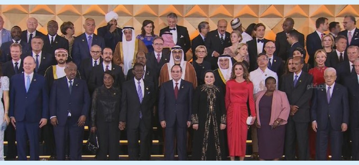 توسط الرئيس عبد الفتاح السيسي رئيس الجمهورية، وقرينته انتصار السيسي، صورة تذكارية للقادة والملوك والزعماء المشاركين في حفل افتتاح المتحف المصري الكبير.