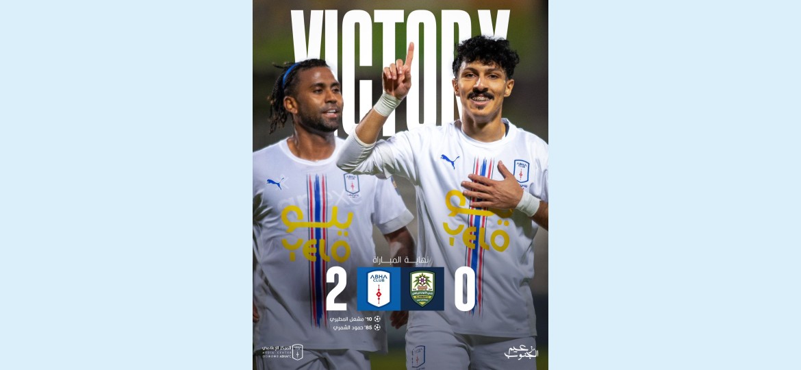 وافتتح مشعل المطيري التسجيل لأبها في الدقيقة العاشرة من زمن اللقاء، قبل أن يعزز حمود الشمري النتيجة بالهدف الثاني قبل نهاية المباراة بخمس دقائق.