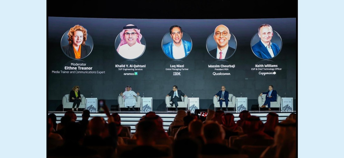 وفي الحلقة النقاشية الأولى والتي دارت حول موضوع تسريع التحول الصناعي من خلال قوة الذكاء الاصطناعي، تحدث نخبة من الخبراء والمختصين العالميين في هذا الجانب، حيث تحدث كل من خالد القحطاني نائب الرئيس الأعلى لأرامكو السعودية، وسينثيل راماني، ولوك نيازي، ووسيم الشوربجي، وكيث ويليامز، فيما أدارت الحلقة النقاشية إيثنه تريانور، المدربة