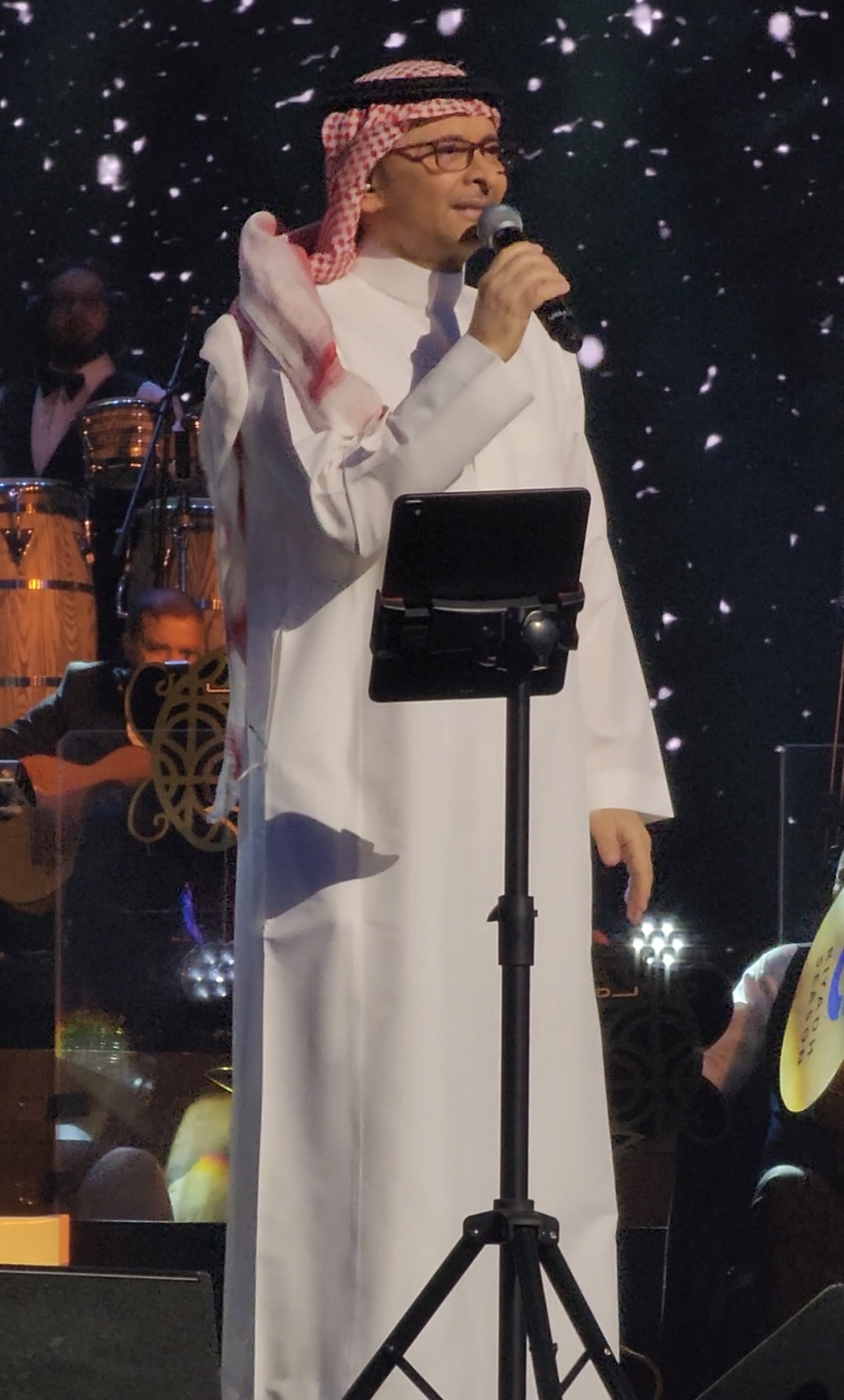 وقدّم عبدالمجيد عبدالله مجموعة من أبرز أعماله بمصاحبة الفرقة الموسيقية بقيادة المايسترو وليد فايد، وسط تنظيم مميز من شركة روتانا، التي قدمت عرضاً فنياً متكاملاً يليق بالنجم وبروح الحدث.