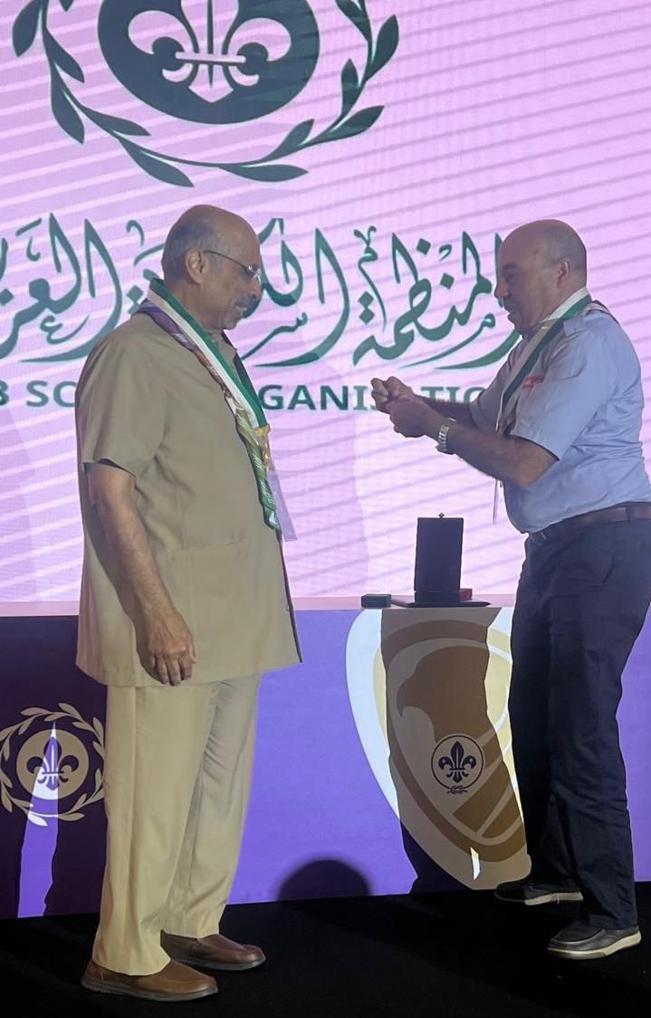وجاء هذا التكريم تقديرًا لعطائه الطويل وجهوده المؤثرة في خدمة الحركة الكشفية، وتطوير برامجها على المستويين العربي والدولي، إلى جانب مساهماته البارزة في دعم المبادرات الشبابية وتأهيل القيادات الكشفية.