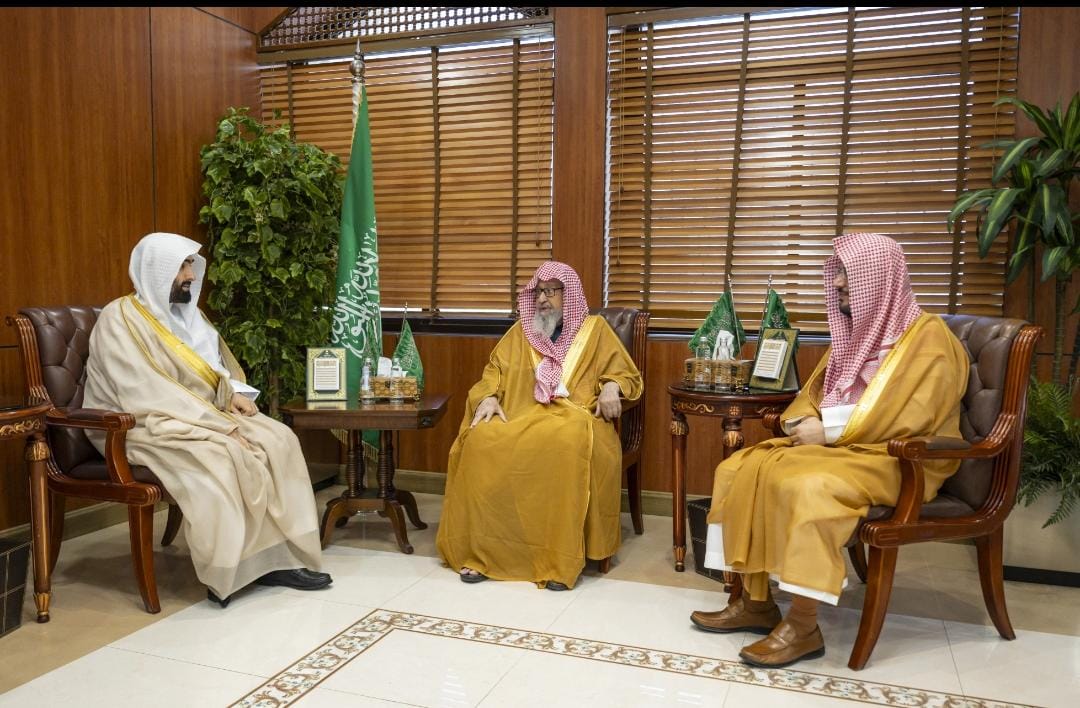 جاء ذلك خلال استقبال سماحته في مكتبه بالرئاسة العامة للبحوث العلمية والإفتاء بالرياض، اليوم الخميس 20 نوفمبر 2025، لمعالي رئيس ديوان المظالم رئيس مجلس القضاء الإداري الدكتور خالد بن محمد اليوسف.
