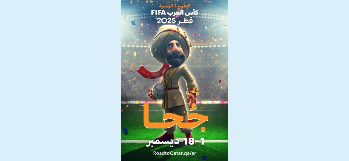 قبل اسبوع واحد عى البطولة الكبرى ، أعلنت اللجنة المحلية المنظمة لكأس العرب FIFA قطر 2025™️ عن إطلاق التعويذة الرسمية للبطولة جحا™️، وذلك قبيل انطلاق الحدث الإقليمي الذي يقام في دولة قطر في الفترة من 1 إلى 18 ديسمبر المقبل.