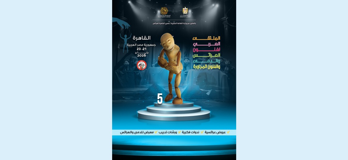 كشفت الهيئة العربية للمسرح النقاب عن عدد من فعاليات الدورة الخامسة من الملتقى العربي لفنون العرائس والدمى والفنون المجاورة، الذي تنظمه الهيئة مع وزارة الثقافة المصرية (مسرح القاهرة للعرائس) في القاهرة من 21 إلى 23 يناير 2026، وذلك بعد أن أتمت لجان تحكيم تنافسيات المشاركة في الدورة الخامسة من الملتقى العربي لفنون العرائس والدمى والفنون المجاورة عملها في فرز المتقدمين للتنافس على دخول الملتقى في مسارين: