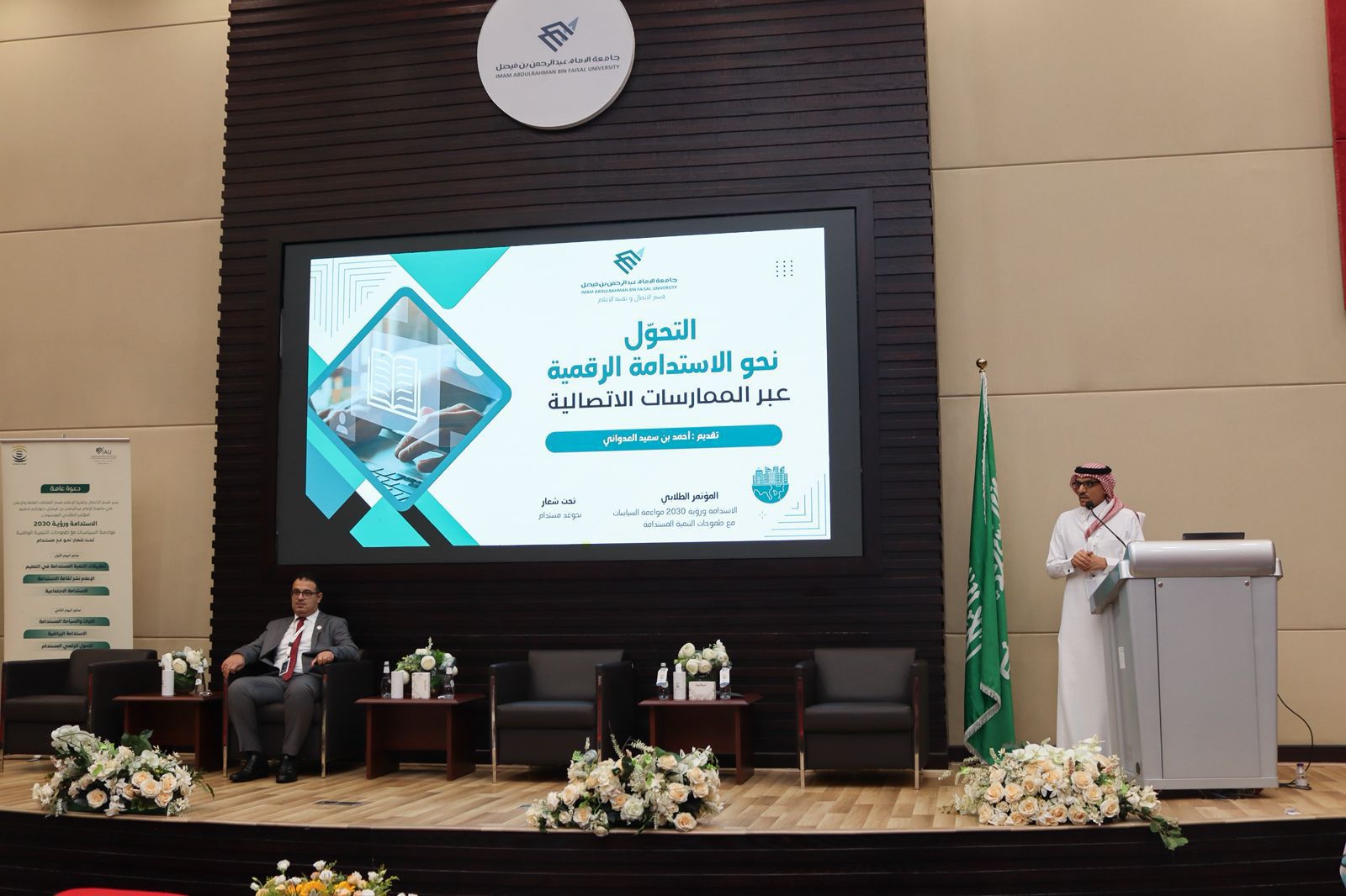 وشهد اليوم الأول كلمة افتتاحية لرئيسة قسم الاتصال وتقنية الإعلام، الدكتورة ندى آل مبارك، تلاها إطلاق ثلاثة محاور تناولت: التنمية المستدامة في التعليم، ودور الإعلام في نشر ثقافة الاستدامة، إضافة إلى محور الاستدامة في المجتمع.