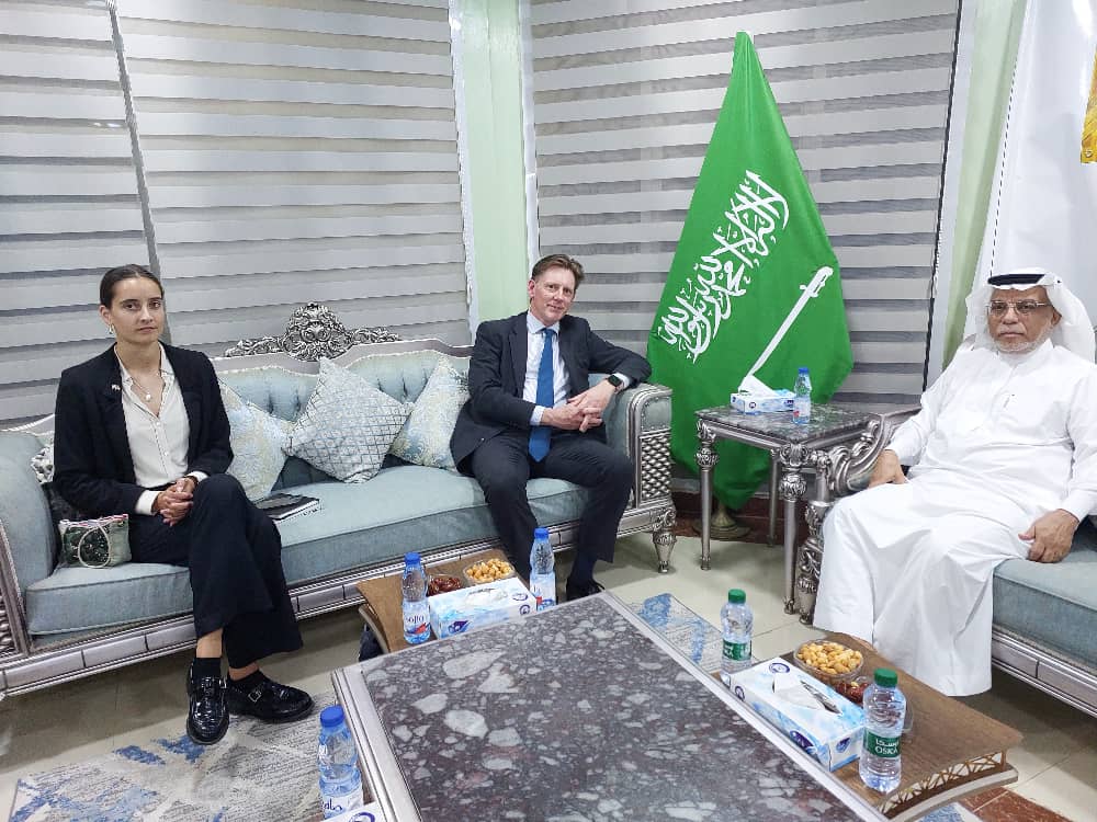 استقبل سفير خادم الحرمين الشريفين لدى السودان الأستاذ علي بن حسن جعفر مساء أمس الثلاثاء بمقر السفارة في بورتسودان الممثلل الخاص للمملكة المتحدة لدى السودان ريتشارد كرودن، وذلك في إطار الجهود الدولية الهادفة إلى إيقاف الحرب وتعزيز الاستجابة الإنسانية،وجرى خلال اللقاء بحث التطورات في السودان، واستعراض مسارات التحرك الدبلوماسي الرامية إلى دعم فرص التهدئة وتهيئة الظروف الملائمة لخفض التصعيد، بما في ذلك تعزيز التنسيق بين الشركاء الدوليين.