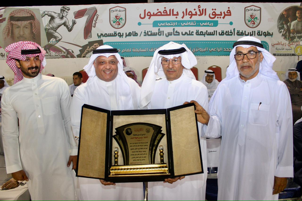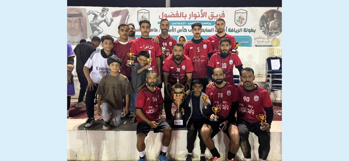 حقق فريق الأنوار بالفضول لقب بطولة الرياضة أخلاق السابعة لعام 1447 هـ على كأس الاستاذ طاهر بو قسمي وبرعاية رسمية من رجل الأعمال وليد بن خليفة الذياب وذلك بعد أن تمكن من الفوز في المباراة النهائية أمام فريق القلعة وبنتيجة هدف واحد دون مقابل سجله اللاعب محمد الموسى كما شهدت المباراة طرد حارس القلعة أحمد الفزيع و كذلك لاعب الأنوار أحمد العمار من حكم المباراة محمد العلي بوصف وتعليق عامر البوحيزة .