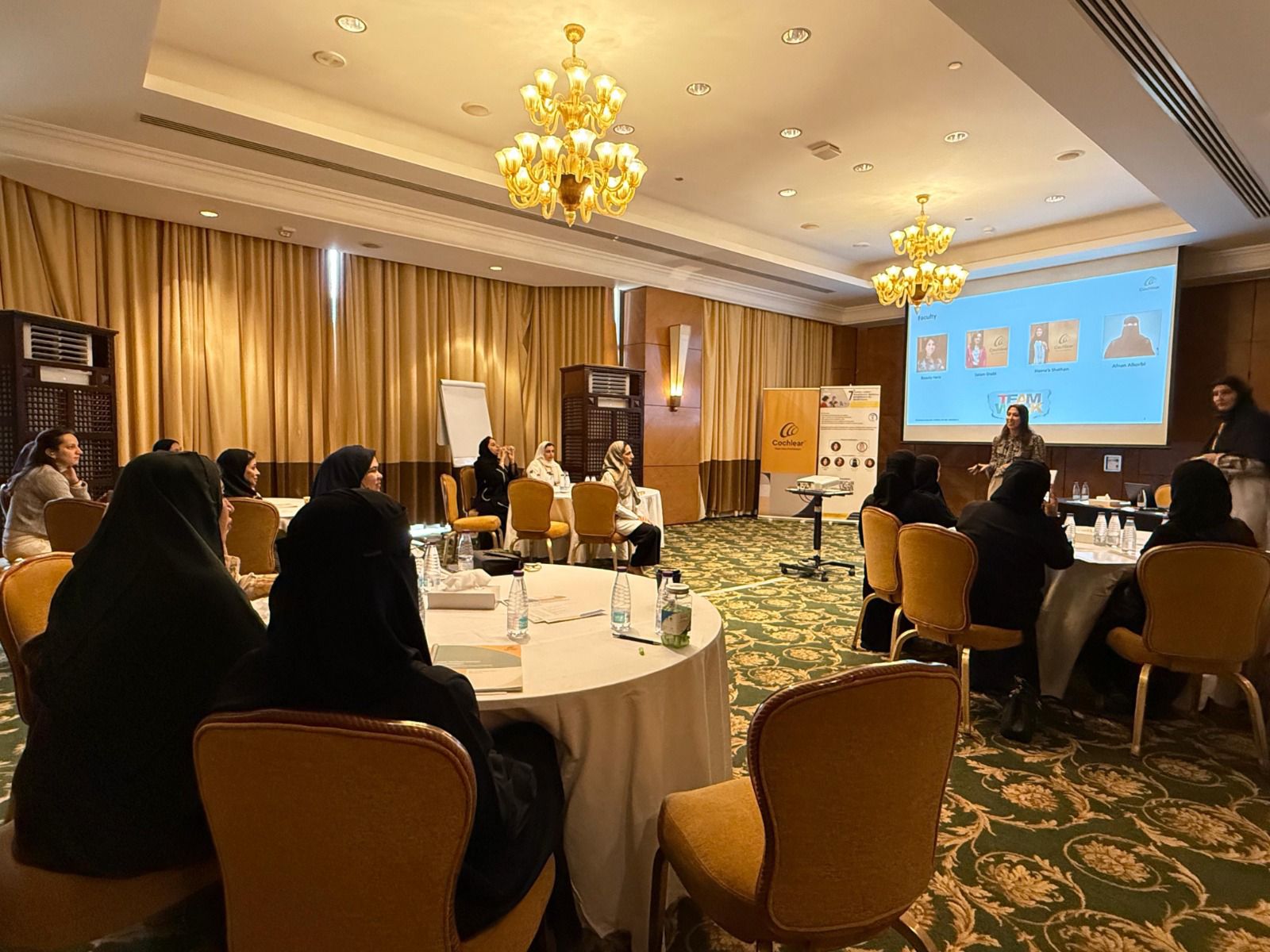 و جاءت ورشة التأهيل هذا العام ولأول مرة على مستوى المنطقة الشرقية والثالثة على مستوى المملكة، مخصّصة لتأهيل البالغين من زارعي القوقعة بحضور نخبة من أخصائيي النطق والتخاطب من مختلف المستشفيات والمراكز التخصصية بالمملكة ممن يمتلكون خبرة متقدمة في مجال التأهيل السمعي لزارعي القوقعة وقد سلّطت الورشة الضوء على فئة البالغين ما بعد اكتساب اللغة وهم الأشخاص الذين فقدوا سمعهم بعد أن كانت لديهم قدرة سمعية طبيعية، مما يجعل احتياجاتهم التأهيلية مختلفة في مجالاتها وأساليبها عن الأطفال فاقدي السمع وبالتالي تتطلب برامج أكثر تخصصًا.