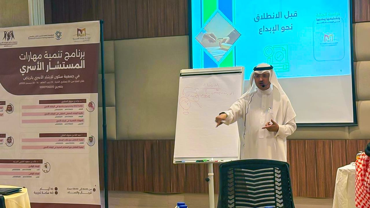 في إطار رسالتها الهادفة لبناء أسرة متوازنة ومجتمع أكثر استقرارًا، *دشّنت جمعية سكون للإرشاد الأسري اليوم برنامجها النوعي «تنمية مهارات المستشار الأسري»*، بالشراكة مع مركز بيت الخبرة، والذي يُعد إحدى المبادرات التدريبية المتخصصة الرامية إلى تأهيل وتمكين الكوادر العاملة في مجال الإرشاد الأسري، وفق منهجية علمية ومهنية متقدمة.