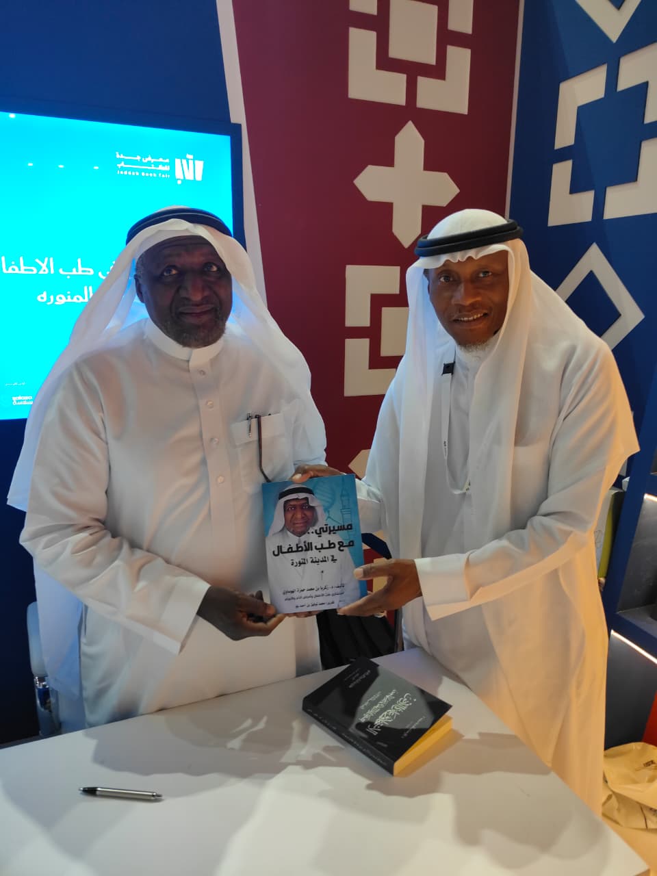 دشن استشاري طب الاطفال وأمراض الدم الأورام الدكتور زكريا بن محمد الهوساوي كتابه الموسم ب "مسيرتي مع طب الاطفال في المدينة المنورة" - تحرير: محمد توفيق بن أحمد بلو، وذلك بركن المؤلف السعودي في معرض جدة الدولي للكتاب .
