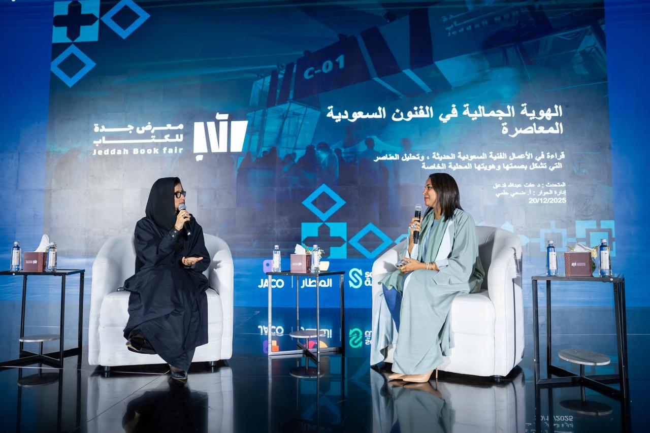 ناقشت ندوة حوارية ضمن فعاليات معرض جدة للكتاب 2025 "الهوية الجمالية في الفنون السعودية المعاصرة"، بمشاركة الدكتورة عفت فدعق، وأدارت الحوار الأستاذة ضحى حلمي، بحضور من الفنانين التشكيليين، والمصورين، والمهتمين بالشأن الفني.