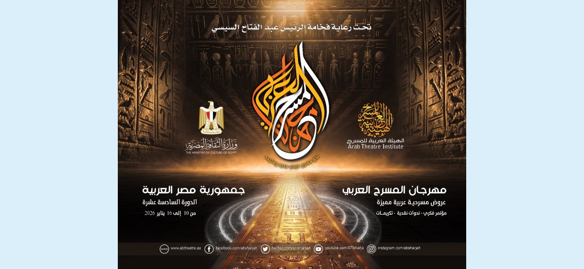 بمناسبة اقتراب موعد انطلاقة الحدث المسرحي العربي الأبرز والذي يدشن بالمسرح بداية كل عام، تعلن الهيئة العربية للمسرح بيانها حول فعاليات الدورة 16 من مهرجان المسرح العربي، الذي تنظمه بالتعاون مع وزارة الثقافة المصرية، من 10 إلى 16 يناير 2026 في مدينة القاهرة، حيث تحظى هذه الدورة برعاية من فخامة رئيس الجمهورية عبد الفتاح السيسي، وبمشاركة فاعلة من كافة أقسام وزارة الثقافة المصرية وكوادرها البشرية الإدارية والفنية.