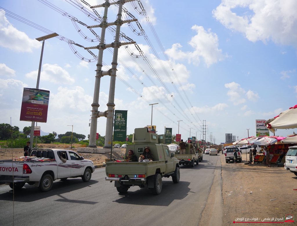 أعلنت قوات "درع الوطن" اليمنية القيام بالأعمال الأمنية بعد وصولها العاصمة المؤقتة عدن اليوم ، لتباشر مهامها في تعزيز الأمن والاستقرار ،وحماية المؤسسات العامة والممتلكات ،وذلك بما يساهم في ترسيخ حضور الدولة في كافة المواقع.