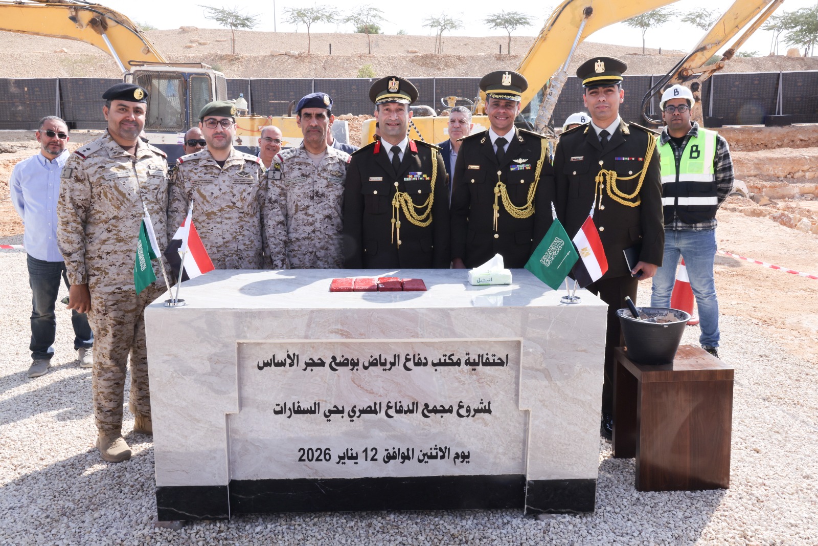 احتفل مكتب الدفاع المصري بالرياض اليوم الاثنين الموافق ١٢ يناير ٢٠٢٦ بوضع حجر الأساس لمشروع مجمع الدفاع الجديد بحي السفارات بالرياض وذلك بدعوة من العقيد أركان حرب شريف عفيفى ملحق الدفاع المصري بالرياض وبحضور السفير / ايهاب ابو سريع السفير المصري بالرياض وممثلي وزارة الدفاع بالمملكة العربية السعودية وبحضور أعضاء مكتب الدفاع واعضاء البعثة الدبلوماسية بالسفارة المصرية بالرياض والمهندس احمد البغدادي الرئيس التنفيذي للشركة المنفذة للمشروع شركة ثبات للإنشاءات المحدودة والدكتور علي الشعيبي رئيس مجلس إدارة مكتب البيئة استشاري المشروع.