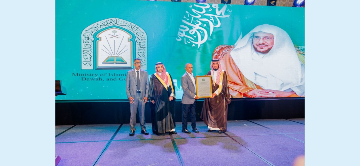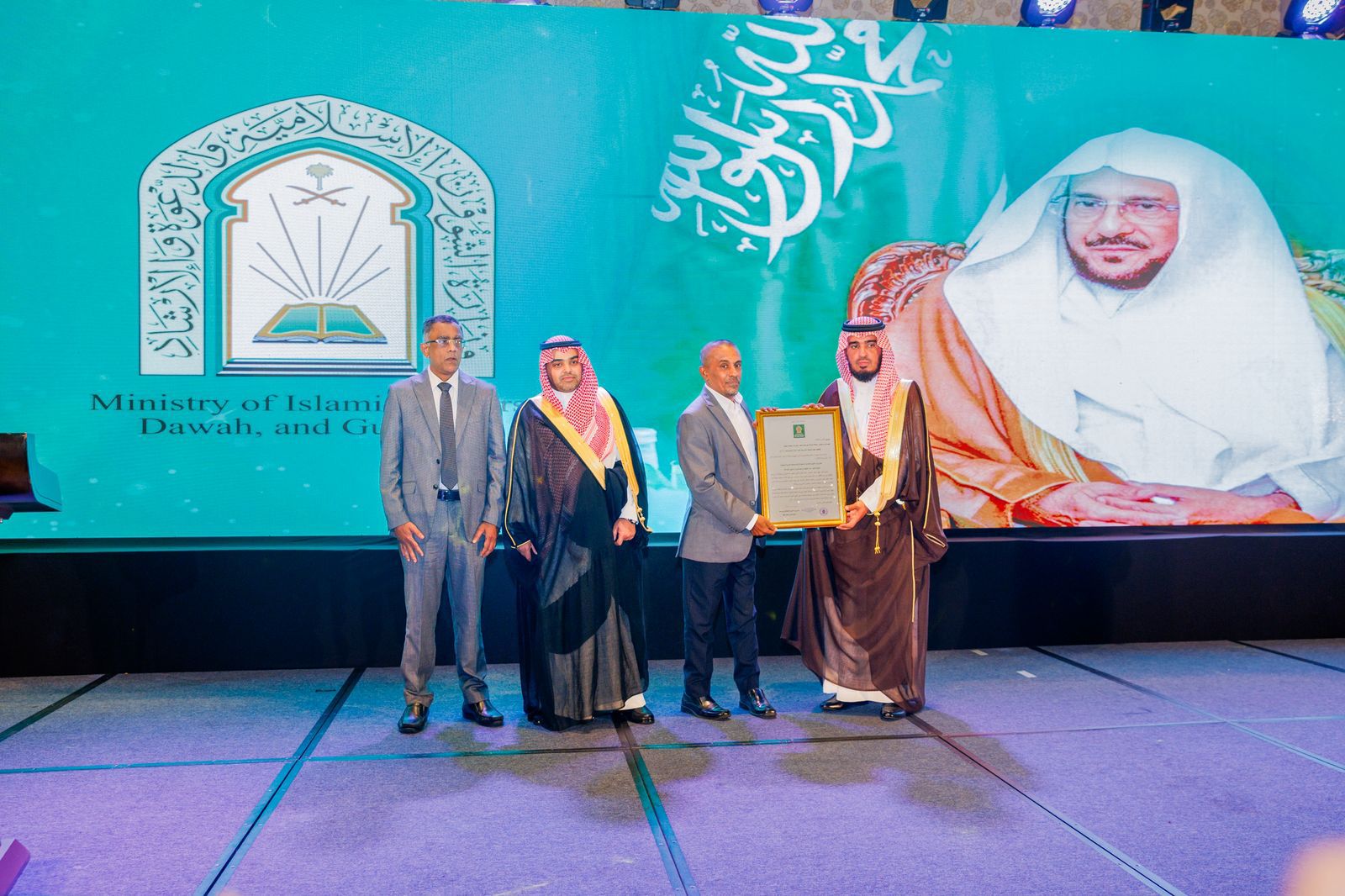 وتسلّم الوثيقة نيابةً عن معاليه الملحق الديني في جمهورية الهند، والمشرف على أعمال وزارة الشؤون الإسلامية والدعوة والإرشاد في جمهورية سريلانكا، الشيخ بدر بن ناصر العنزي، حيث قدّمها معالي نائب وزير شؤون الأديان والثقافة بجمهورية سريلانكا، السيد محمد منير مظفر، خلال الحفل الختامي الذي أقيم يوم أمس الاثنين بالعاصمة كولمبو وبحضور شخصيات إسلامية بارزة وسفراء الدول العربية والإسلامية المعتمدين لدى سيرلانكا .