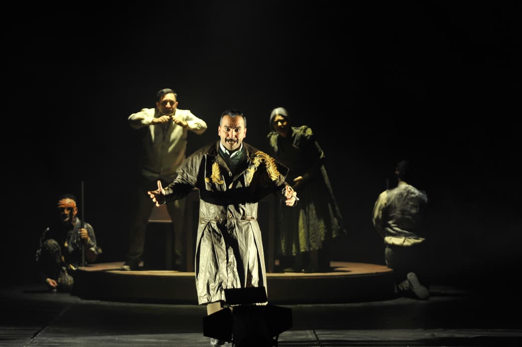 هو تصورات ذهنية في خيال المحقق، وسوف يتحول المسرح الى فضاء نفسي يعكس اضطراب الوعي وتشظي الحقيقة لذلك لن يكون مكتملاً ولن يقدم حكاية ذات بعد أفقي أو عمودي، بل سيقدم عدة حكايا متناثرة مجزءة إلى لوحات حتى لا يصل المتلقي الى وحدة متماسكة لكي ينظر هو بنفسه للعرض من زاوية متعددة ويمارس قراءات متعددة، سينطلق من موضوع الشر، كما رأيتم في الفتوغرافية الأولى.
