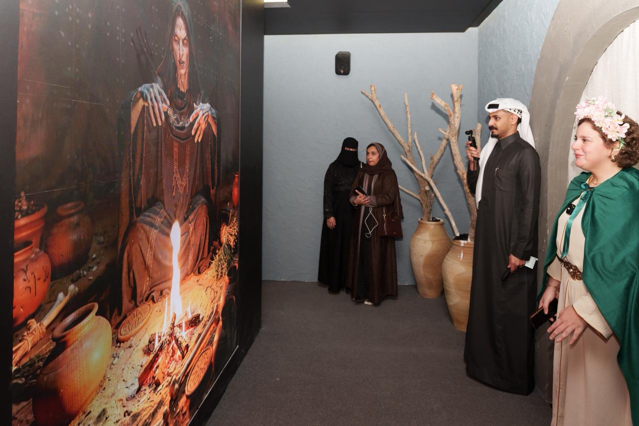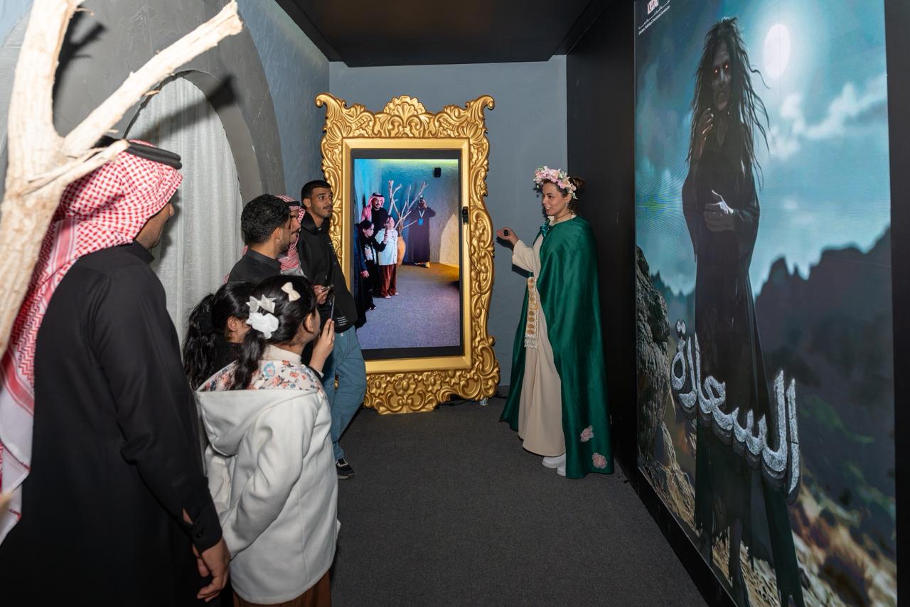 وأدخلت التفعيلة الزوّار من ممر استقبال تقوده شخصية "هيا"، في انتقال متدرّج من الواقع إلى فضاءات تخيلية أكثر اتساعًا، قبل أن تنفتح التجربة على قاعة أولى اعتمدت إضاءة هادئة، وحركة ظلال متداخلة، مع ملامح ليلية استحضرت عمق الصحراء.