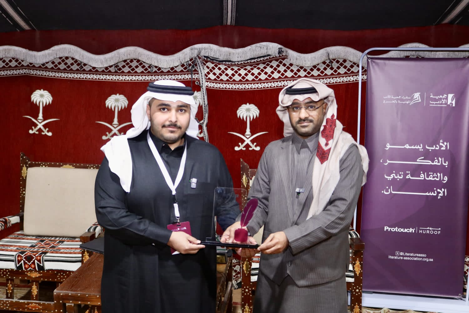 وفي ختام الأمسية، جرى تكريم الشاعر الأستاذ: عامر الصويغ من قبل الأستاذ نواف الموسى، سفير جمعية الأدب المهنية بمحافظة الخرج، في لفتة تقديرٍ تليق بالمبدعين، وتجسّد رسالة الجمعية في الاحتفاء بالكلمة، وترسيخ حضور الأدب بوصفه فعلًا ثقافيًا حيًّا ومتجددًا.