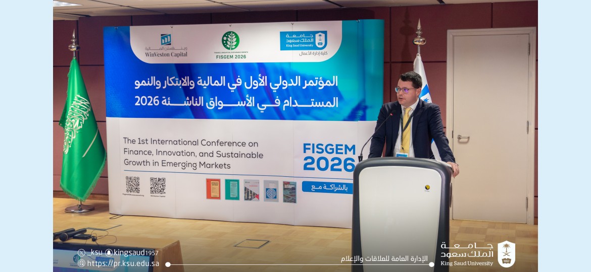 تنظم جامعة الملك سعود، ممثلة بكلية إدارة الأعمال وبالشراكة مع شركة وينفستن المالية (WinVeston)، النسخة الأولى من المؤتمر الدولي في المالية والابتكار والنمو المستدام في الأسواق الناشئة (FISGEM 2026)، والذي تستمر فعالياته على مدار يومي 2 و3 فبراير 2026م في مدينة الرياض والذي يجمع المؤتمر نخبة من كبار الأكاديميين والباحثين، حيث استقطب أكثر من 100 عالم متخصص في قطاع المالية من شتى أنحاء العالم. ويوفر الحدث منصة علمية رائدة لاستعراض ما يفوق 70 اكتشافاً ونظرية علمية جديدة، تهدف إلى إعادة صياغة مفاهيم الأسواق المالية ومواكبة التحولات الاقتصادية العالمية
