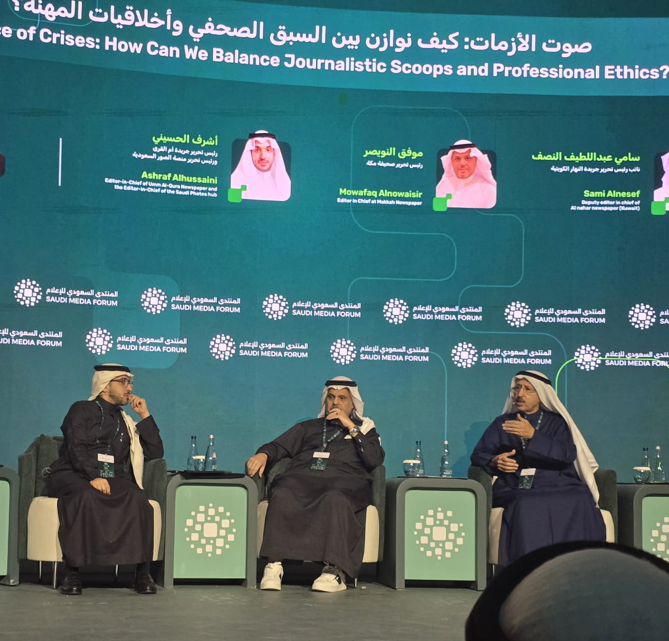 استضاف المنتدى السعودي للإعلام جلسة نقاشية بعنوان "صوت الأزمات.. كيف نوازن بين السبق الصحفي وأخلاقيات المهنة؟" شهدت نقاشات حول أهمية الدقة والمسؤولية في العمل الصحفي، حيث أكد المتحدثون أن الدقة والمسؤولية هما البوصلة التي تحمي مصداقية المؤسسة الإعلامية، وأن الأولوية دائماً للدقة على السرعة.
