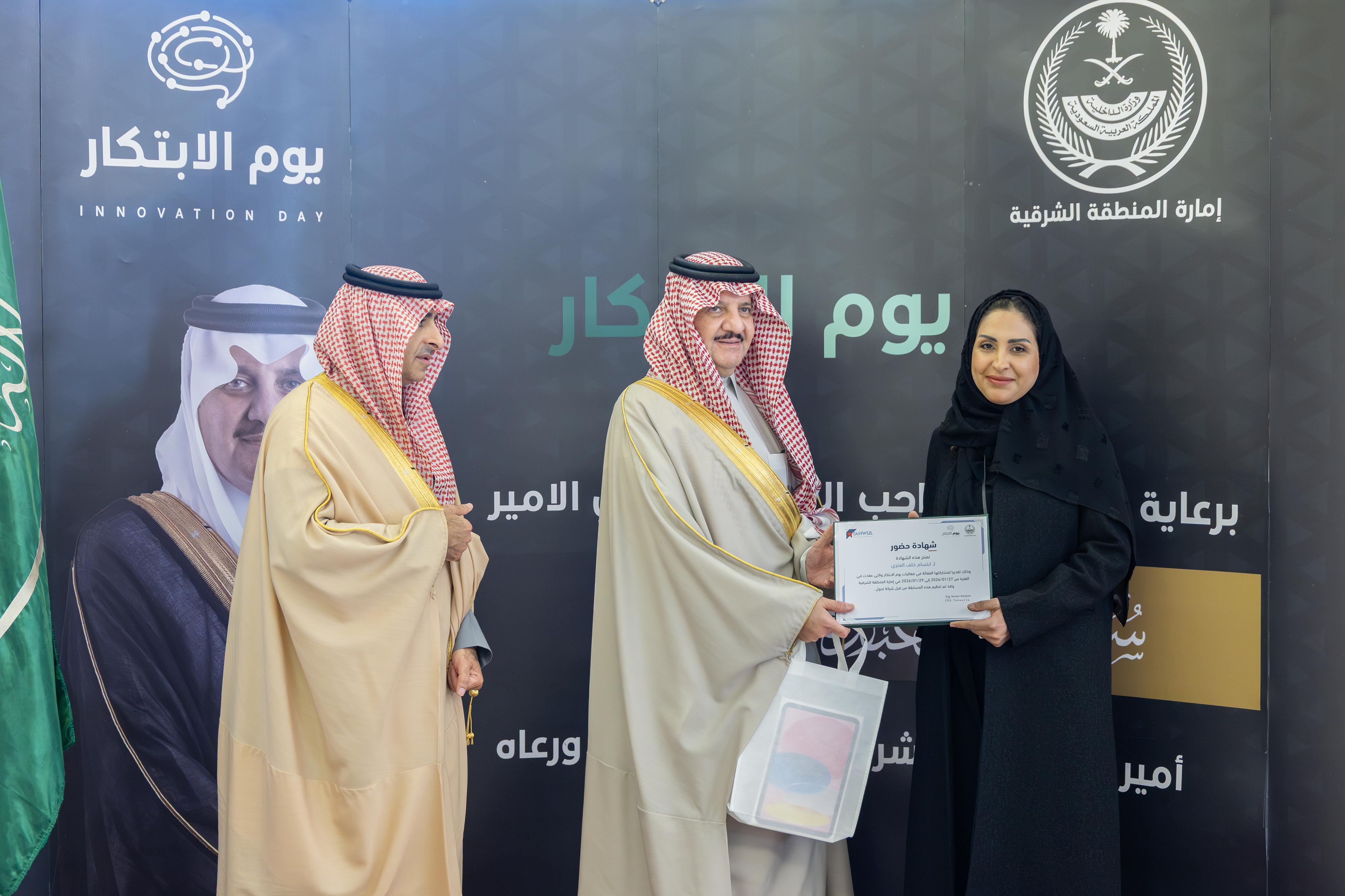 وأكد سمو أمير المنطقة الشرقية أن الابتكار يمثل ركيزة أساسية في الارتقاء بالأداء الحكومي وتحسين جودة الخدمات، مشيراً إلى أهمية دعم المبادرات التي تسهم في إيجاد حلول مبتكرة، واستثمار طاقات الكفاءات الوطنية بما يواكب تطلعات التطوير المؤسسي، ويعزز كفاءة العمل وجودة المخرجات.