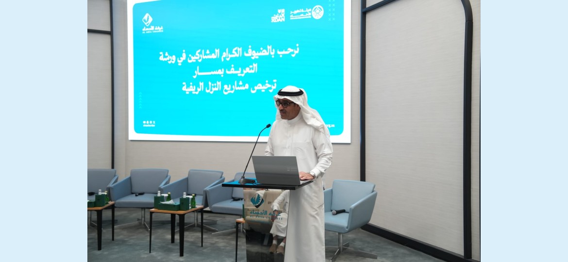 نظّمت غرفة الأحساء ممثلة باللجنة الزراعية بالشراكة مع هيئة تطوير الأحساء وشركة دان مؤخرًا، ورشة عمل "التعريف بمسار ترخيص مشاريع النزل الريفية"، بحضور ومشاركة عدد من مُلّاك المزارع والمستثمرين والمهتمين وذلك بقاعة سليمان الحماد -رحمه الله- بمقر الغرفة.