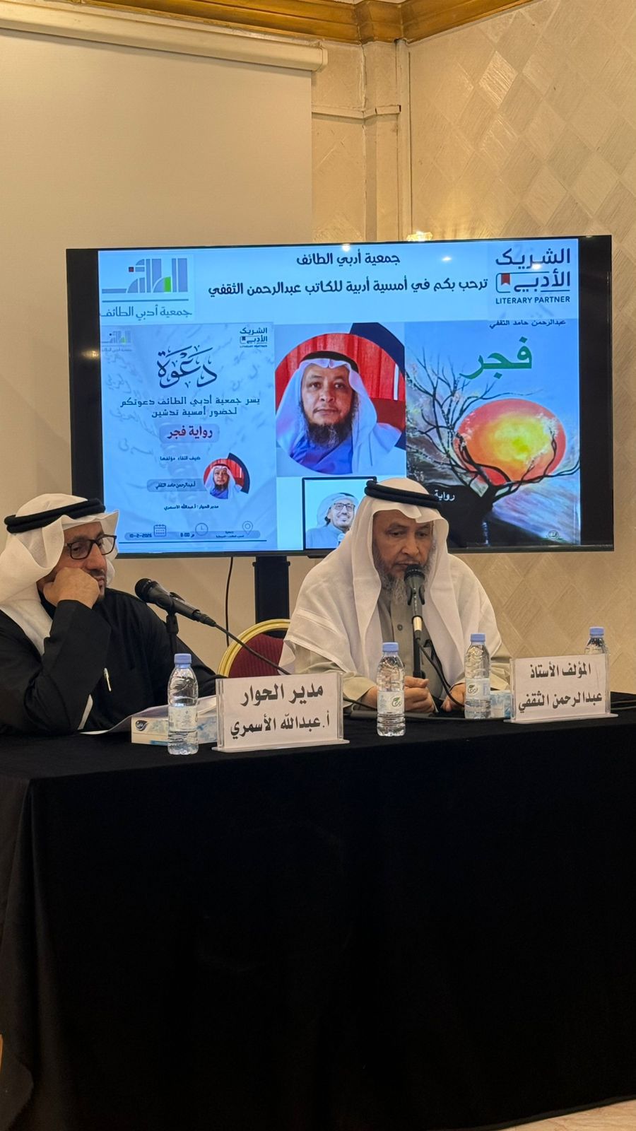 ضمن فعاليات برنامج ( رق منشور ) الذي تدشن فيه جمعية أدبي الطائف إصداراتها ، وضمن مبادرة الشريك الأدبي دشنت الجمعية رواية ( فجر ) للكاتب الأستاذ عبدالرحمن الثقفي مساء أمس الثلاثاء .