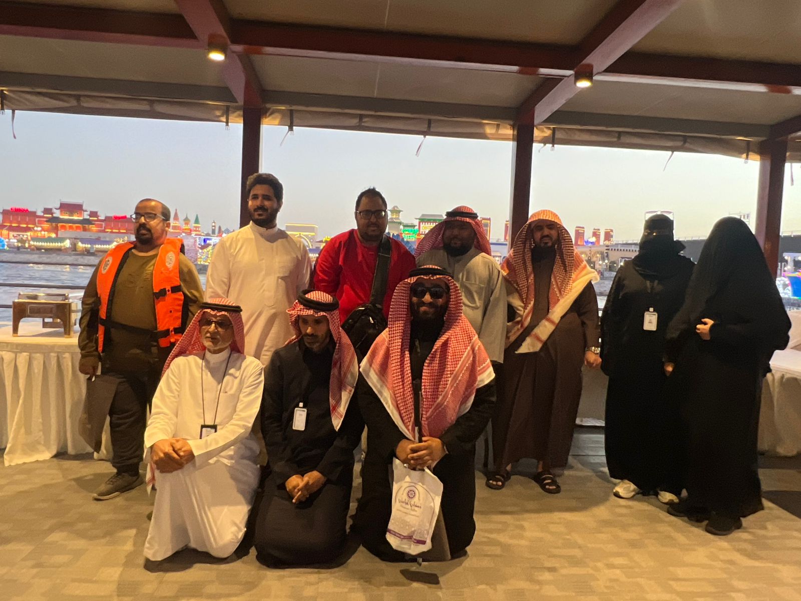 وعقب ذلك، واصل الوفد جولته مرورًا بأركان القرية المختلفة، حتى الوصول إلى بوابة المملكة العربية السعودية ، حيث تابعوا أحد العروض السعودية المصاحبة للفعاليات، في مشهد وطني أضفى على الرحلة طابعًا خاصًا واعتزازًا بالهوية. ختام مميز بروح جماعية واختُتمت الرحلة بتناول وجبة عشاء في أحد مطاعم القرية، في أجواء سادها الفرح والرضا، بعد يوم حافل بالتجارب الجديدة والمواقف الملهمة. مشاعر تعبّر عن الأثر وعبّر المستفيد عبد الرحمن السيف عن سعادته بهذه التجربة، مؤكدًا أن ركوبه القارب للمرة الأولى كان لحظة لا تُنسى، خاصة مع سماعه صوت الأمواج بشكل واضح وشعوره بحركة الماء من حوله.