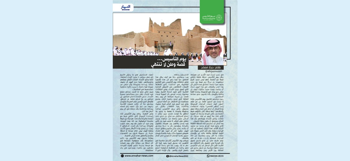 ويبقى يوم التأسيس أكثر من مناسبة في التقويم؛ إنه صديق أمين يعيد إلينا كل عام ما قد يغيب عنا في زحمة الحياة.